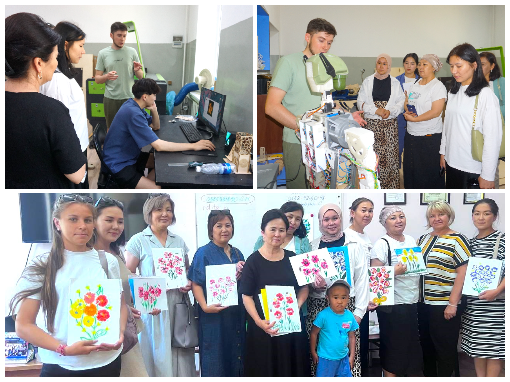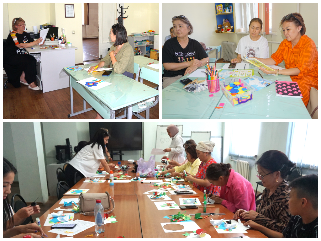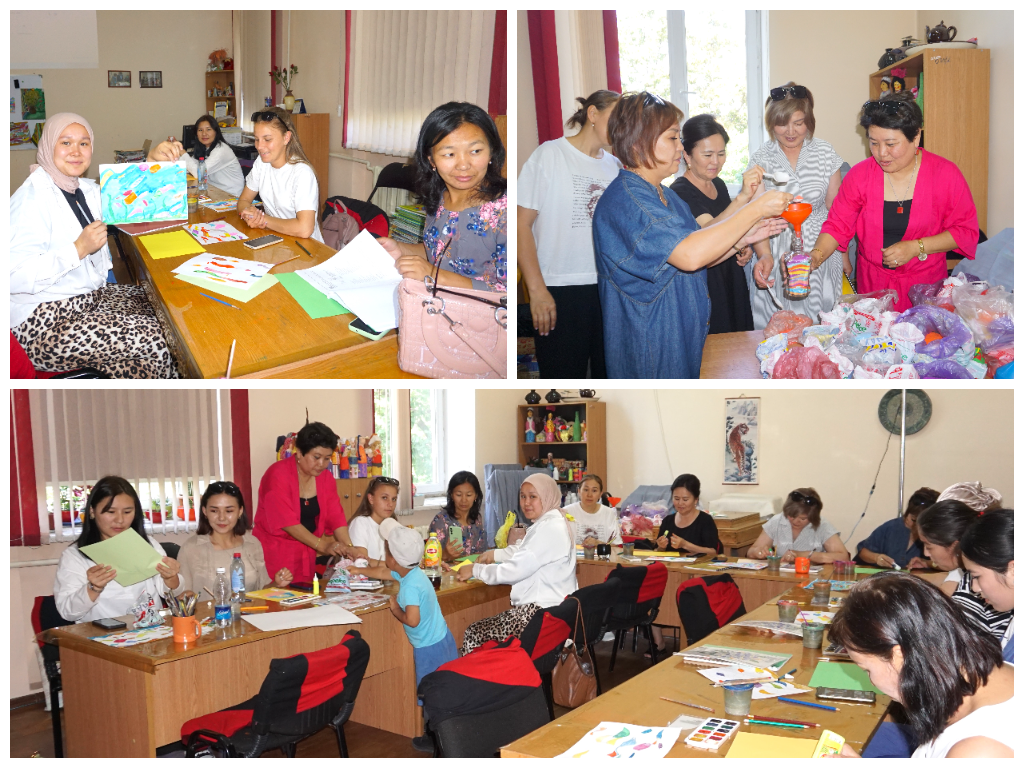 Кроме этого участники курса посетили различные мастер-классы: в творческой мастерской “Мир сказочных фантазий” Отличника образования КР Андрющенко Веры Федоровы они научились работать в техниках квиллинг и оригами; в ИЗО-студии «Солнышко» Отличника образования КР Солтобаевой Дильбары Шадыбековны познакомились с объемной пескографией и рисованием песком на световых столах. В ИЗО-студии «Спектр» под руководством Штанько Светланы Николаевны педагоги научились применять нетрадиционные приемы рисования на занятиях с дошкольниками, а в мастерской Андрея Ивановича Хлопкова познакомились с основами технического моделирования.