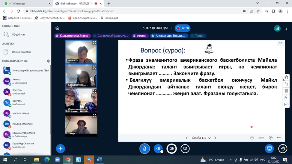 Национальная детская инженерно-техническая академия "Алтын туйун" открывает регистрацию участников на серию он-лайн игр "Что? Где? Когда?". В играх могут принять участие школьники 8-11 классов со всех областей Кыргызстана. Каждая команда должна состоять из педагога-руководителя и 6 человек (один из которых - капитан). Заявки присылайте на электронную почту chgk@rdita.kg по следующей форме: