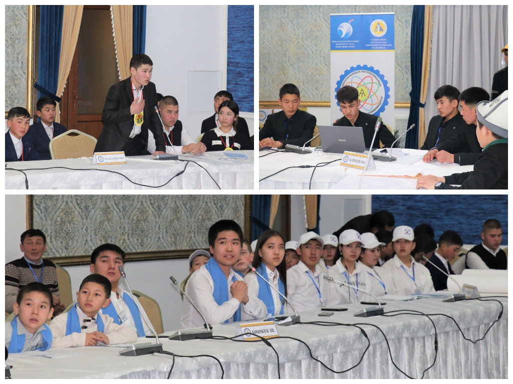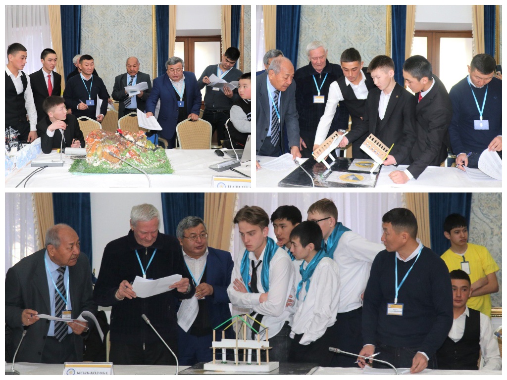 В НТО приняли участие 20 команд со всех регионов Кыргызстана – более 100 человек! Для того, чтобы попасть в республиканский тур, ребята сначала прошли отбор в своих областях. Научно-техническая олимпиада для школьной и юниор-лиги проходила в три этапа. В первом – теоретическом туре – команды презентовали доклады на научно-исследовательскую тему. Ребята должны были рассчитать и обосновать перспективные маршруты прокладки тоннелей в горах Кыргызстана для развития регионов.