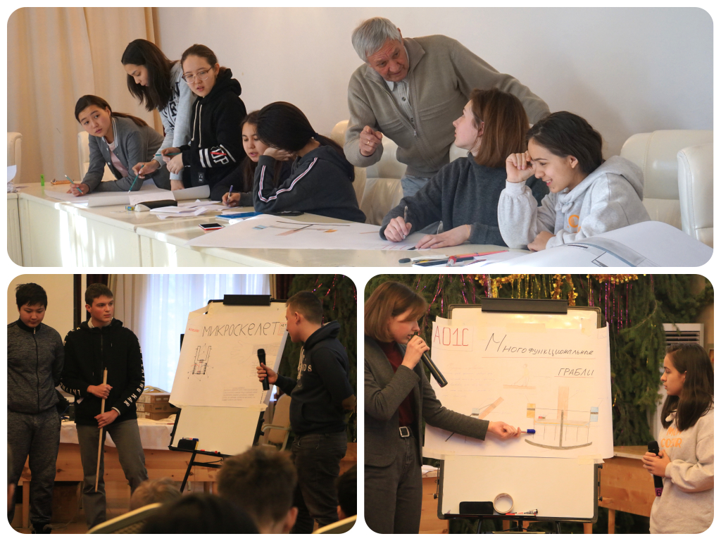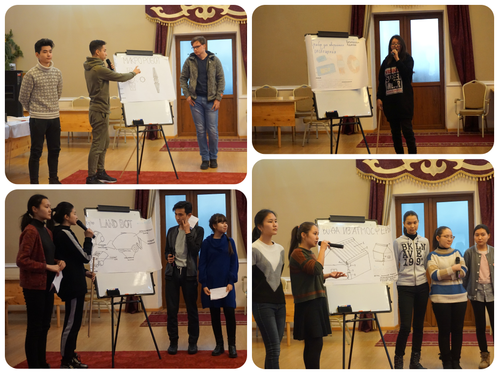Очень интересной была защита творческих проектов по теории решения изобретательских задач, которую преподавал ребятам доктор технических наук, профессор КРСУ им. Б.Н. Ельцина Шамсутдинов Марат Мубарякшаевич. Ребята приятно удивили компетентное жюри своими исследовательскими работами. I место занял проект «Микроскелет» (в помощь людям с ограниченными возможностями) Орусбаева Айсултана, Погорелова Артема и Матвеенко Даниила. II место было присуждено Рахманбердиевой Диане, Эсеналиевой Жамиле, Жумабаевой Сайкал, Темиркуловой Акылай, Айбек к Айзирек за проект «Вода из атмосферы». III место было отдано исследовательской разработке «Landbot», трудились над которой Токошева Бермет, Ярмухамедова Камиллия, Эшперов Адилет и Асылбашева Ширин. Также весьма интересными и оригинальными были проекты «Устройство для очистки водоемов», «Многофункциональные грабли», «Микробот «Джин»» и «Прибор для аварийного оповещения (наручные часы)».