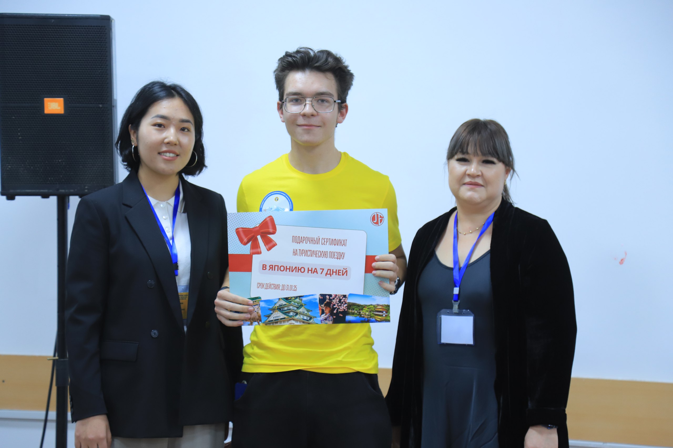 В этом году благодаря спонсорам на фестивале "Караван креативных идей и технологий" был специальный приз - Гран-при - путевка в Японию на семь дней от "Japan Tourism and Business Agency", который был присужден Рыбьянову Егору - воспитаннику астрономического клуба "Созвездие" Национальной детской инженерно-технической академи "Алтын туйун" за проект "Автоматизированный пункт выдачи".