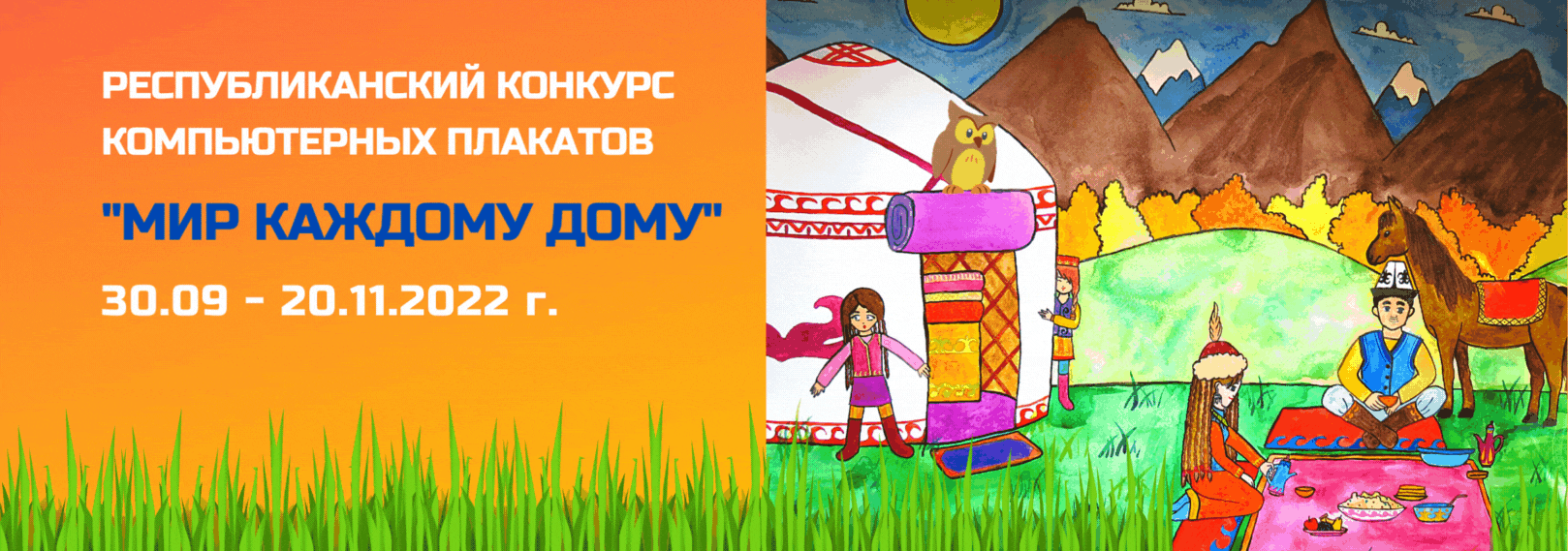 Министерство образования и науки Кыргызской Республики и Национальная детская инженерно-техническая академия «Алтын туйун» с 30 сентября по 20 ноября 2022 года проводят республиканский конкурс компьютерных плакатов «Мир каждому дому». Цель конкурса - воспитание патриотизма и гражданственности, формирование уважения и гордости, чувства единства, взаимопонимания, взаимоподдержки и любви к Кыргызстану.