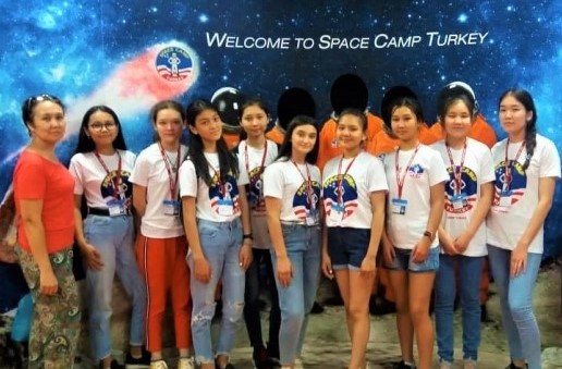 В нашем клубе «Созвездие» огромное внимание уделяется тому, чтобы ребята не просто зубрили теорию и учились решать олимпиадные задачи, но и могли применять полученные знания на практике. В этом году стажировку в лагере прошли Анарбеков Акмаль, Марат кызы Сайкал, Сыдыкова Сымбат, Джайлоева Бекаим, Сапарова Элина, Тахирова Элизабет, Алтыбаева Назия, Яншансин Саид, Каледина Настя, Аргимбаева Зейнеп, Асаналиева Арууке и Суйунбекова Жылдыз в сопровождении педагогов РДИТА Асылалиевой Айдай Айдралиевны и Жогаштиева Нурлана Тилековича. Программа лагеря была очень интересна и насыщена. Она включала в себя множество обучающих программ, позволяющих ребятам узнать массу полезной информации о строении Вселенной и принципах работы космической станции. Участники лагеря познакомились с графиком работы космонавта, смогли испытать на себе все семь космических тренажеров-симуляторов, посетили обсерваторию и с помощью телескопа изучили планеты, понаблюдали за ростом растений в нетипичных или даже неземных условиях в специальной лаборатории.