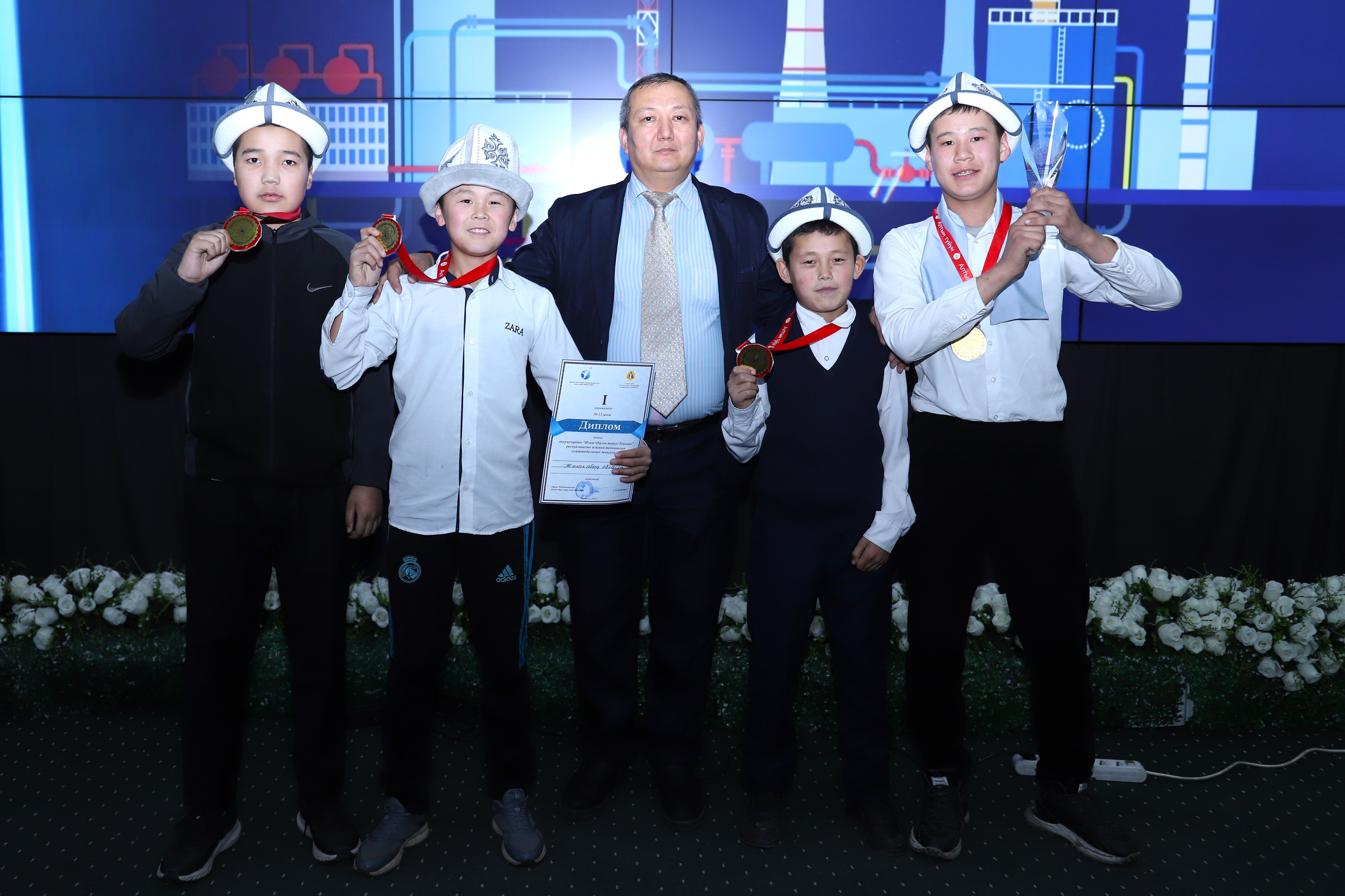 Грамоты в юниор-лиге получила команда города Бишкек (Кубанов Хусейин, Джеенбекова Асема, Джолдошев Мырзахмад и Дыйкамбаев Нурислам), а в школьной лиге – команда Баткенской области (Омурзаков Исхак, Атаханов Мардан, Насирдинов Эрмек и Абдураимов Азатбек). Все участники НТО-2025 также получили сертификаты и памятные подарки от ОсОО «БишкекЭлектро».