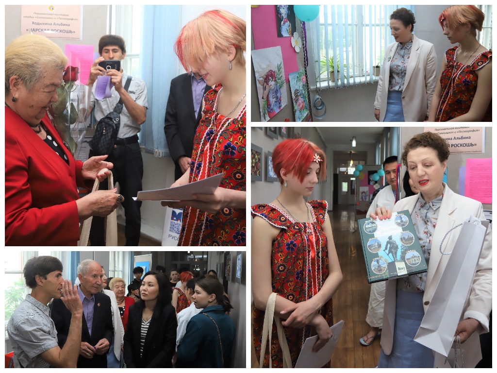 23 мая в НДИТА состоялась персональная выставка воспитанницы ИЗО-студии «Солнышко» Ходыкиной Альбины. На экспозиции «Царская роскошь» была представлена гжельская, хохломкая и жостовская роспись – более 35 работ! Поздравить Альбину и ее руководителя Дильбару Шадыбековну Солтобаеву пришли Эсма Зурабовна Хагба – главный специалист управления культуры Россотрудничества в Кыргызстане, Семен Яковлевич Поляков – вице-президент общественного объединения Кыргызстана «Русский культурный центр «Гармония»» и художники-педагоги Национального центра детей и юношества «Сейтек» Юрий Брейво и Асель Макиева. Гости отметили талант и художественный вкус Альбины, пожелали ей успехов в учебе и творчестве, а также подарили памятные подарки. Поддержать Альбину пришли также бабушка и мама, педагоги и друзья. Выставка прошла в атмосфере живого общения и хорошего настроения.
