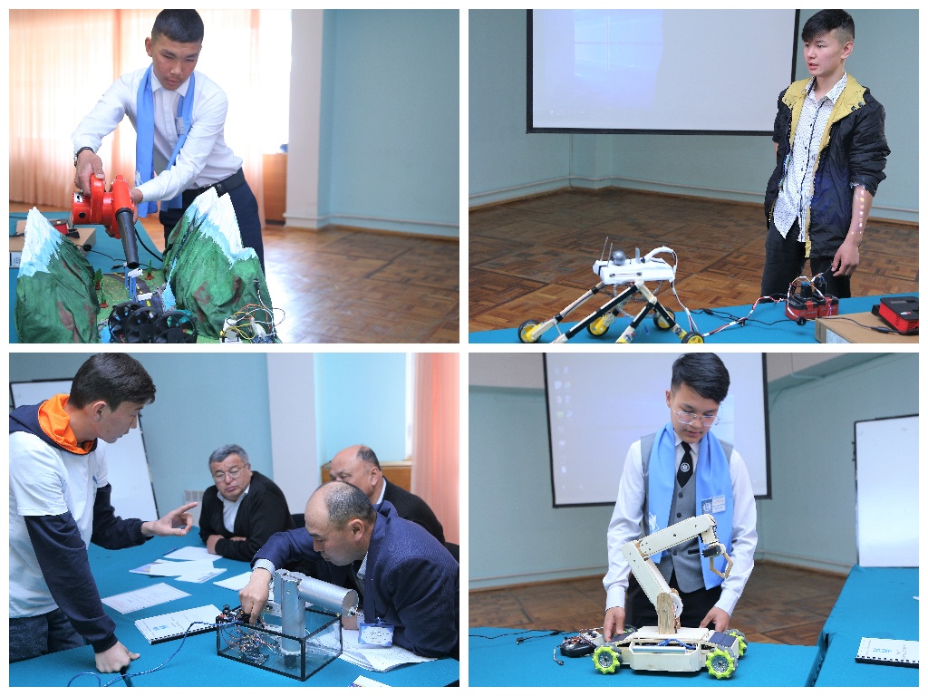 Работу юных изобретателей оценивало компетентное жюри, в состав которого вошли члены-корреспонденты НАН КР, доктора наук, ученые, изобретатели, академики и профессорско-преподавательский состав ведущих ВУЗов Кыргызстана (Председатель жюри международного Форума «Мы – интеллектуалы XXI века» - Бримкулов Улан Нургазиевич - профессор, доктор технических наук, член-корреспондент НАН КР; Ответственный секретарь - Арзыбаев Алмаз Момунович - к.т.н., доцент, зав. кафедрой КГТУ им. И. Раззакова). Жюри номинации «Новые теоретические разработки и модели» возглавил Шамсутдинов Марат Мубаракшаевич (д.т.н, профессор, зав. кафедрой КРСУ им. Б.Н. Ельцина), членами жюри выступили Искендер Козубай (к.ф.м.н., доцент, заведующий кафедрой «Техносферная безопасность» КГТУ им. И.Раззакова); Васильев Валентин Борисович (к.т.н., ведущий научный сотрудник лаборатории «Бурильные машины», Института машиноведения и автоматики НАН КР) и Джалбиев Эмирбек Автандилович (к.т.н, доцент КГТУ им. Раззакова). В номинации «Приборы, радиооборудование и телекоммуникационные системы» председателем жюри был Каримов Бактыбек Токтомуратович (к.т.н, профессор, директор Института электроники и телекоммуникаций КГТУ им. И.Раззакова), член жюри - Чыныбаев Рысалы Рысбекович (к.п.н., доцент КАО КР). В номинации «Энергия и энергосберегающие технологии» Председателем жюри выступил Шаршеев Эрмек Сабырович (к.т.н. ИВПиГЭ НАН КР), а членом жюри - Толомушев Алмаз Эмилбекович (старший преподаватель КГТУ им. И.Раззакова). В номинации «Информационные технологии и программирование» жюри возглавил Бримкулов Улан Нургазиевич (профессор, доктор технических наук, член-корреспондент НАН КР), помогал судить - Барктабасов Касым (старший преподаватель КТУ «Манас»). В номинации «Робототехника и автоматизированные технологии» председателем жюри был Самсалиев Анвар Амантаевич (к.т.н, доцент КГТУ им.Раззакова), членами жюри - Юсупов Кабулджан Мусинович (к.т.н., доцент кафедры прикладная информатика КГУ им. И.Арабаева) и Байболотов Бакытбек Андабекович (к.ф.м.н., доцент Иссык-Кульского Государственного Университета им. К.Тыныстанова). В конкурсе по стендовым моделям жюри возглавил Ордобаев Бейшенбек Сыдыкбекович (к.т.н., профессор, зав. кафедрой КРСУ им. Б.Ельцина), в состав судейской коллегии вошли Кожобаева Салтанат Толонбаевна (к.арх.наук, доцент, зав. кафедрой КГУСТА им. Н.Исанова) и Баялиев Алтынбек Жакыпбекович (к.т.н., доцент КГУСТА им. Н.Исанова). В Астрономическом турнире школьников Председателем жюри выступил Мамытбеков Жайлоо Кыдырович (к.ф.м.н., председатель совета молодых ученых НАН КР), Ответственный секретарь турнира - Шумейко Александра Владимировна (Отличник образования КР, зав. научно-техническим отделом НДИТА «Алтын туйун»), в состав судейской коллегии вошли все руководители команд астротурнира.