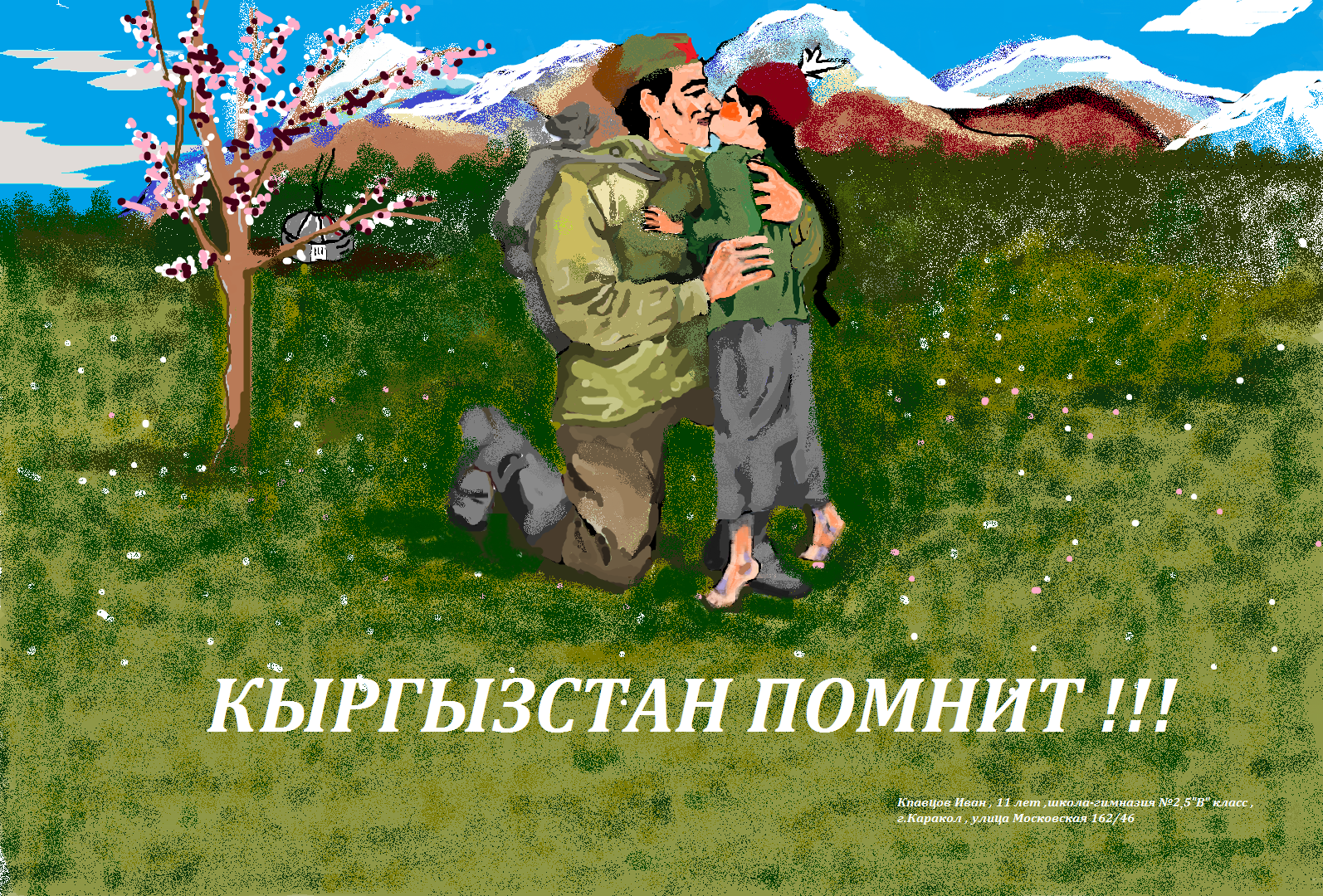 В категории 13-17 лет первое место было присуждено Дюшеевой Айзаде, 17 лет (11 «Б» класс, СШ №25 им. Т.Г. Шевченко, с. Михайловка, Тюпский р-н, Иссык-Кульская область).
