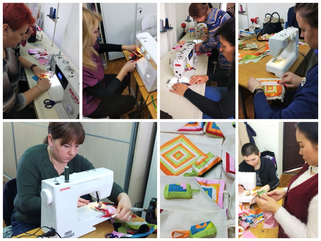 Основной упор курса был сделан на практические занятия - 70 часов. Благодаря полученным знаниям педагоги смогли на практике изготовить брошь в лоскутной технике курак «Каттама», панно «Юрта» с применением различных техник ручной вышивки (тамбурный шов, илме сайма, илме дос, петельный и шов т.п.), выполнили авторскую куклу в технике папье-маше в этно-стиле. Кроме этого, участники курса выполнили проект «Эко-сумка – шоппер» путем стачивания швов на швейной машине.