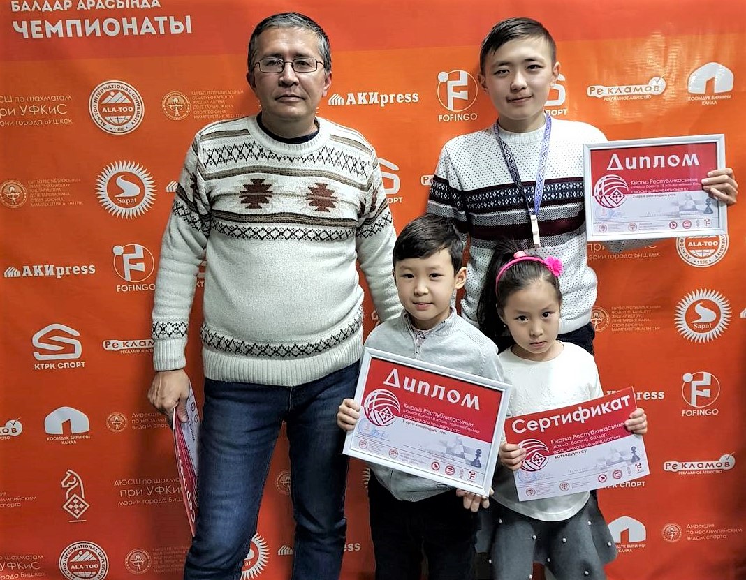 Сегодня наш педагог Умарбеков Азиз Анварович, мастер спорта по шахматам, 2-х кратный чемпион Кыргызской Республики среди мужчин, участник Всемирных олимпиад и Чемпионатов Азии, и его воспитанники Абылкасымов Кайрат и Чынгыз Султай были в гостях у 5 канала.