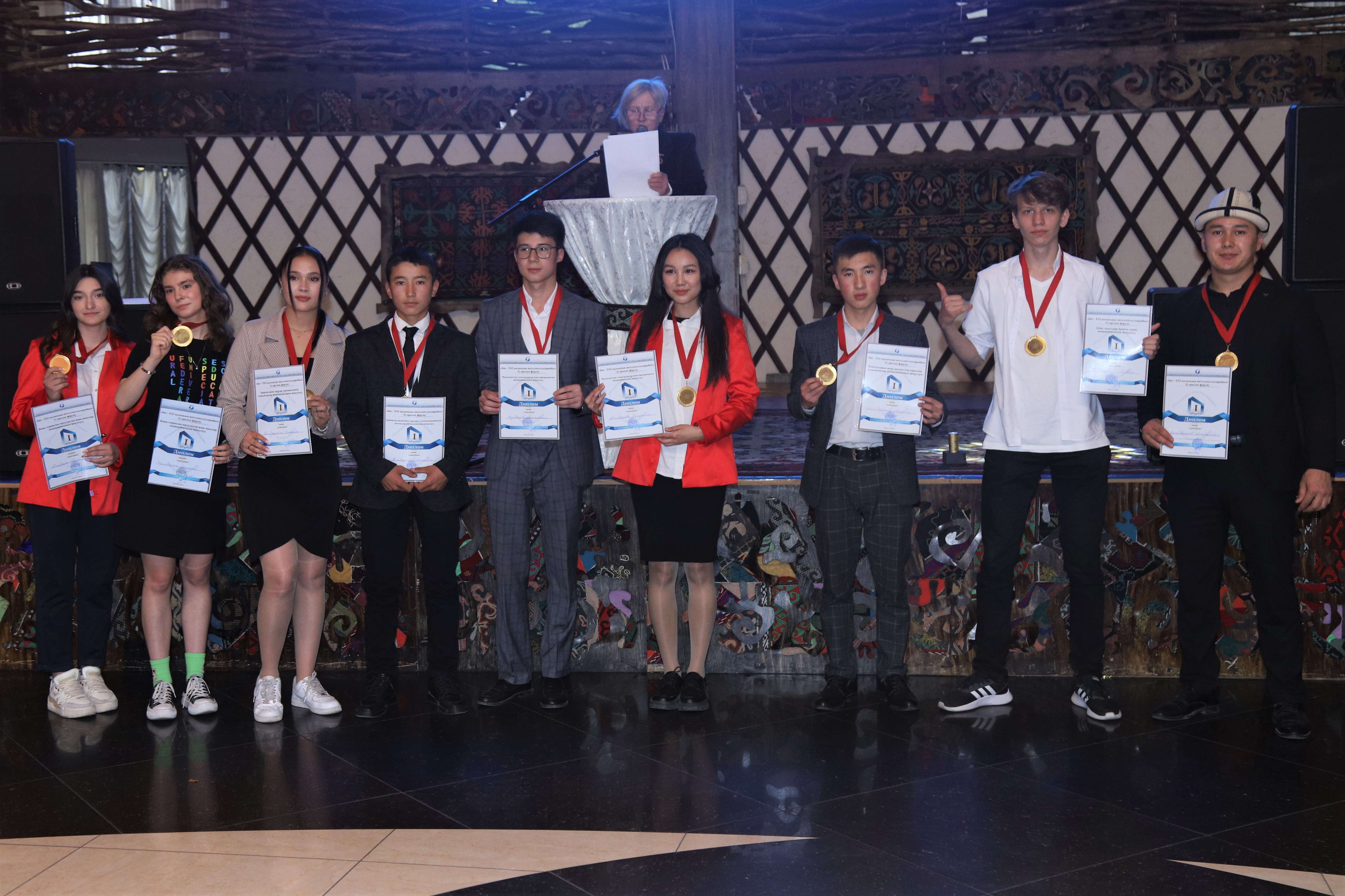 Кожобаева Салтанат Толонбаевна – кандидат архитектурных наук, доцент, директор Института архитектуры и дизайна КГТУ им. И.Раззакова - за лучшее инновационное и авторское решение в номинации «Стендовые модели» наградила почетными грамотами Джолдошева Алихана, г. Кызыл-Кия, СШ № 1 им. Д.М. Карбышева и Аскарбекова Айдина, Иссык-Кульская область, Тонский район.