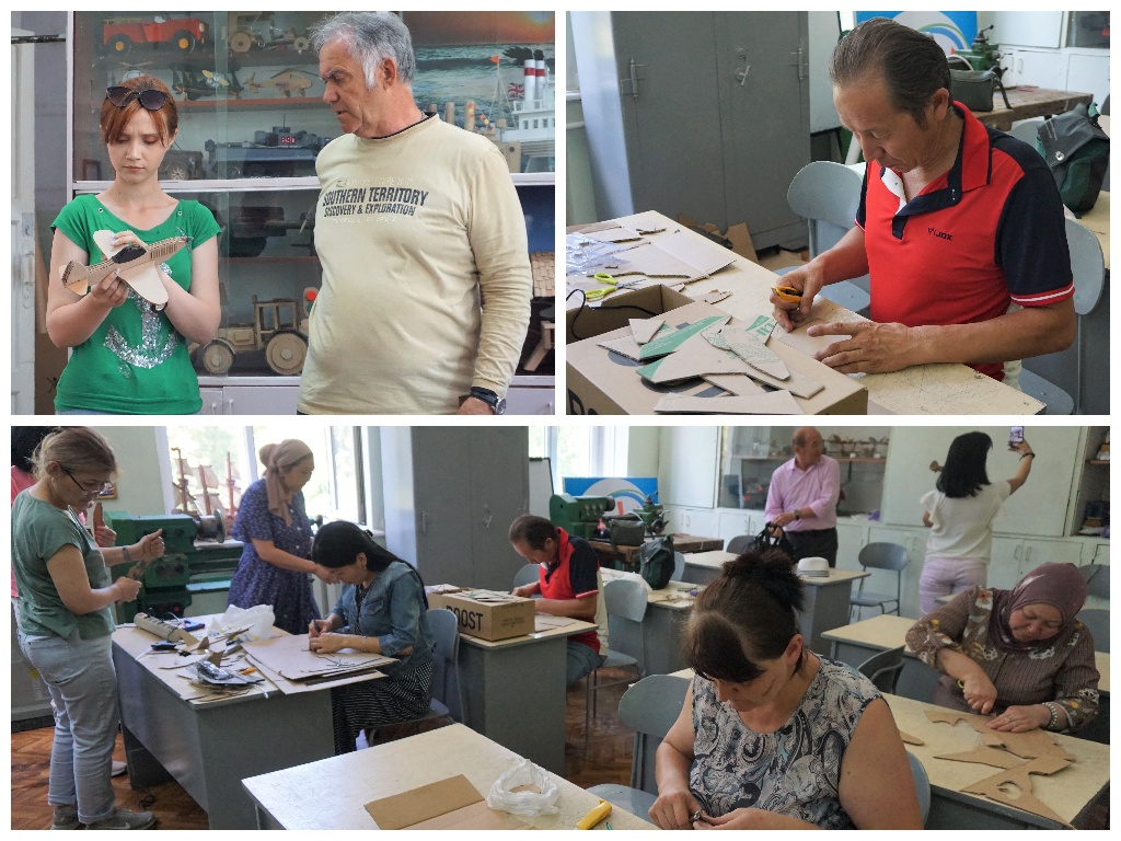 Двухнедельный курс был рассчитан на 48 часов, из которых – 8 теоретические занятия, а 40 – практические. В ходе обучения педагоги познакомились с основными свойствами материалов для моделирования, принципами и технологиями постройки плоских и объемных моделей из бумаги и картона, способами применения шаблонов, правилами организации рабочего места и техники безопасности на занятиях по техническому моделированию. Благодаря практическим занятиям слушатели курса научились самостоятельно изготавливать модели из бумаги и картона по шаблону, выполнять разметку объектов на бумаге и картоне, работать простейшими ручными инструментами, окрашивать модели, разбираться в чертежах, составлять эскизы будущих моделей и многому другому!