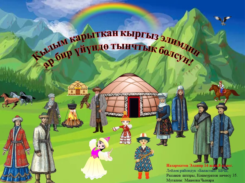 - Диплом I степени - Кубатбеков Айдин (Иссык-Кульская область, Тюпский р-н, с. Тасма, СОШ №19 им. А.Сопиева);