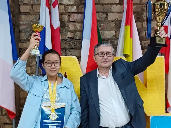 По итогам Чемпионата Кыргызстана среди школьников 2024 года команда "Алтын туйуна" стала 4-й в общем зачете и получила кубок! Мы очень гордимся Аделиной и Азизом Анваровичем! Желаем им новых блестящих побед и выдающихся достижений!