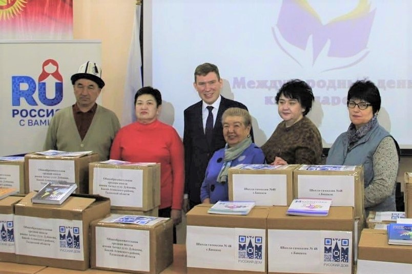 В Международный день книгодарения Русский дом в Бишкеке передал нашей академии детские художественные книги и энциклопедии, пособия для развития интеллекта и мышления, а также учебную литературу для подготовки детей к школе. «Сегодня в Международный день книгодарения мы начинаем распространение книг среди школ Кыргызстана. Всего в этом году Русские дома в Бишкеке и Оше передадут школам Кыргызстана около 20 тысяч книг – учебников и художественной литературы. Как правило, заявки от школ нам приходят через организации российских соотечественников», - отметил руководитель представительства Россотрудничества в Кыргызстане Альберт Зульхарнеев на встрече с директорами школ Бишкека и Талласской области.