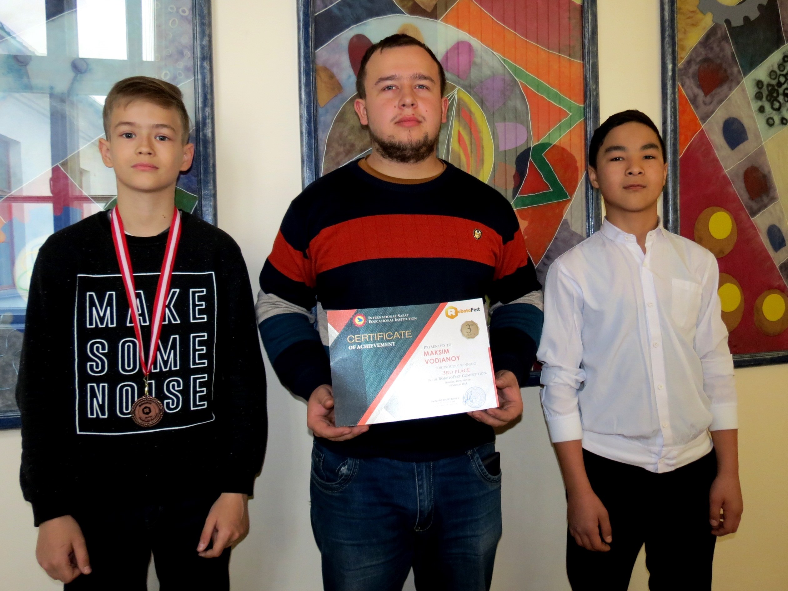 10 марта 2018 года на базе школы Cambridge состоялся Республиканский фестиваль робототехники. В нем приняли участи и ребята из нашей академии. Гасанов Богдан – руководитель команды, Болотников Павел и Тургунбаев Кайнар в категории «Lego Sumo» выиграли серебро!