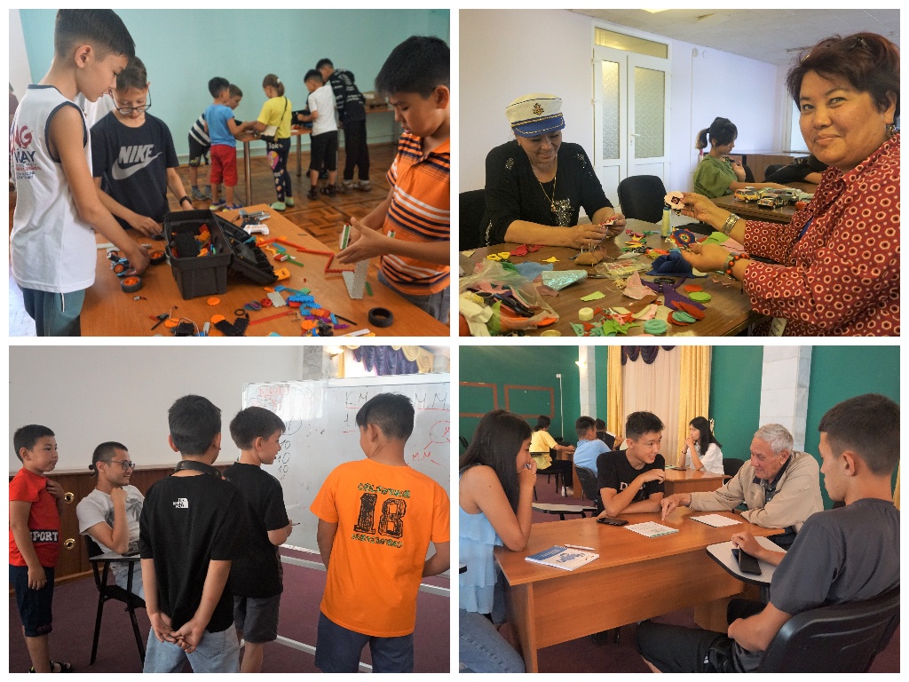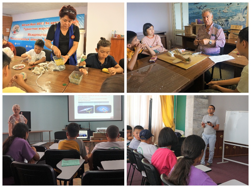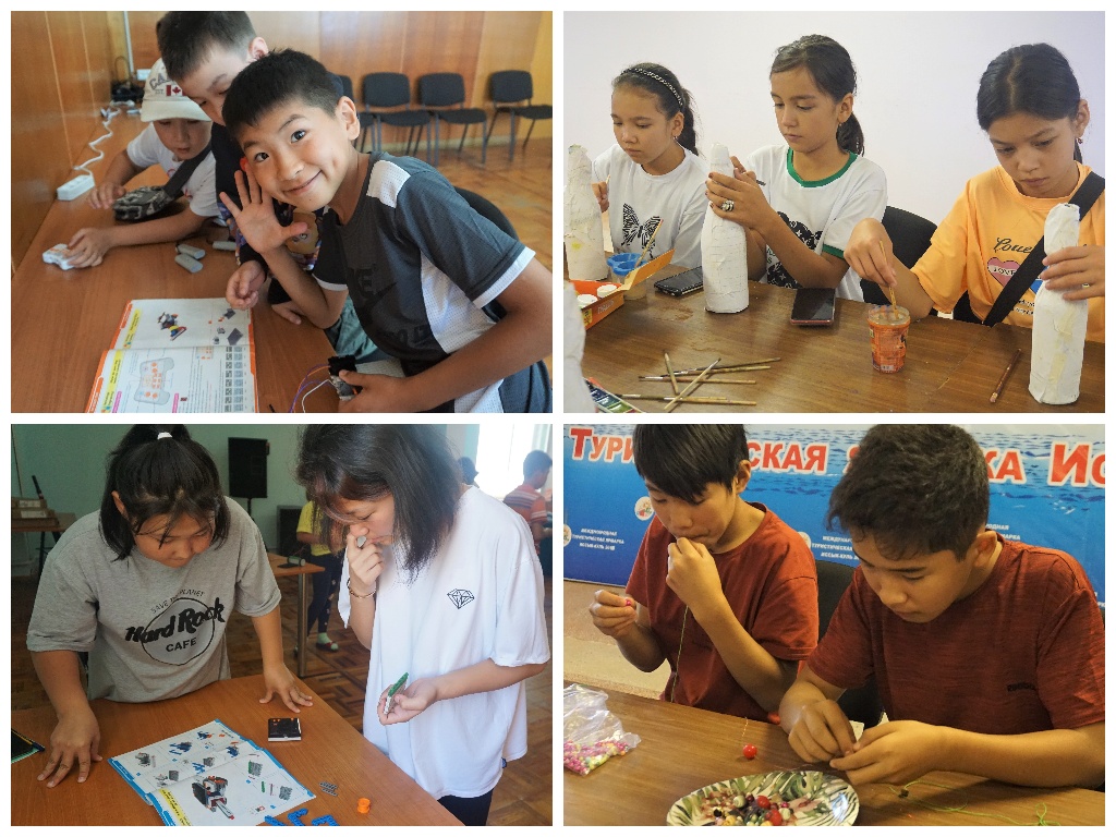 Затем после завтрака и до обеда участники лагеря посещали авторские ворк-шопы: «Теория решения изобретательских задач» от доктора физико-математических наук, профессора КРСУ им Б.Ельцина Шамсудинова Марата Мубаракшаевича; «Занимательная математика» от кандидата физико-математических наук, доцента КГТУ им. И.Раззакова Асанова Рухидина Авытовича; «Робототехника» направления "Роботрек", педагога Абдикеримовой Элины Абдикеримовны, а для ребят постарше была робототехника на Arduino, проволид которую Асанбаев Акоша Исраилович. Открыть тайны нашей Вселенной ребята могли на мастер-классах "АстроМастер" Отличника образования КР Шумейко Александры Владимировны; графическому дизайну научиться у Сыдыкова Эмира Даниловича; Отличник Образования КР Солтобаева Дильбара Шадыбековна учила ребят оригинальным техникам рисования; "Техническое моделирование" вел Хлопков Андрей Иванович; "Шахматы для всех" - Умарбеков Акмаль Анварович; а приемам самообороны участников лагеря обучал Сыдыков Алмаз Усенбаевич.