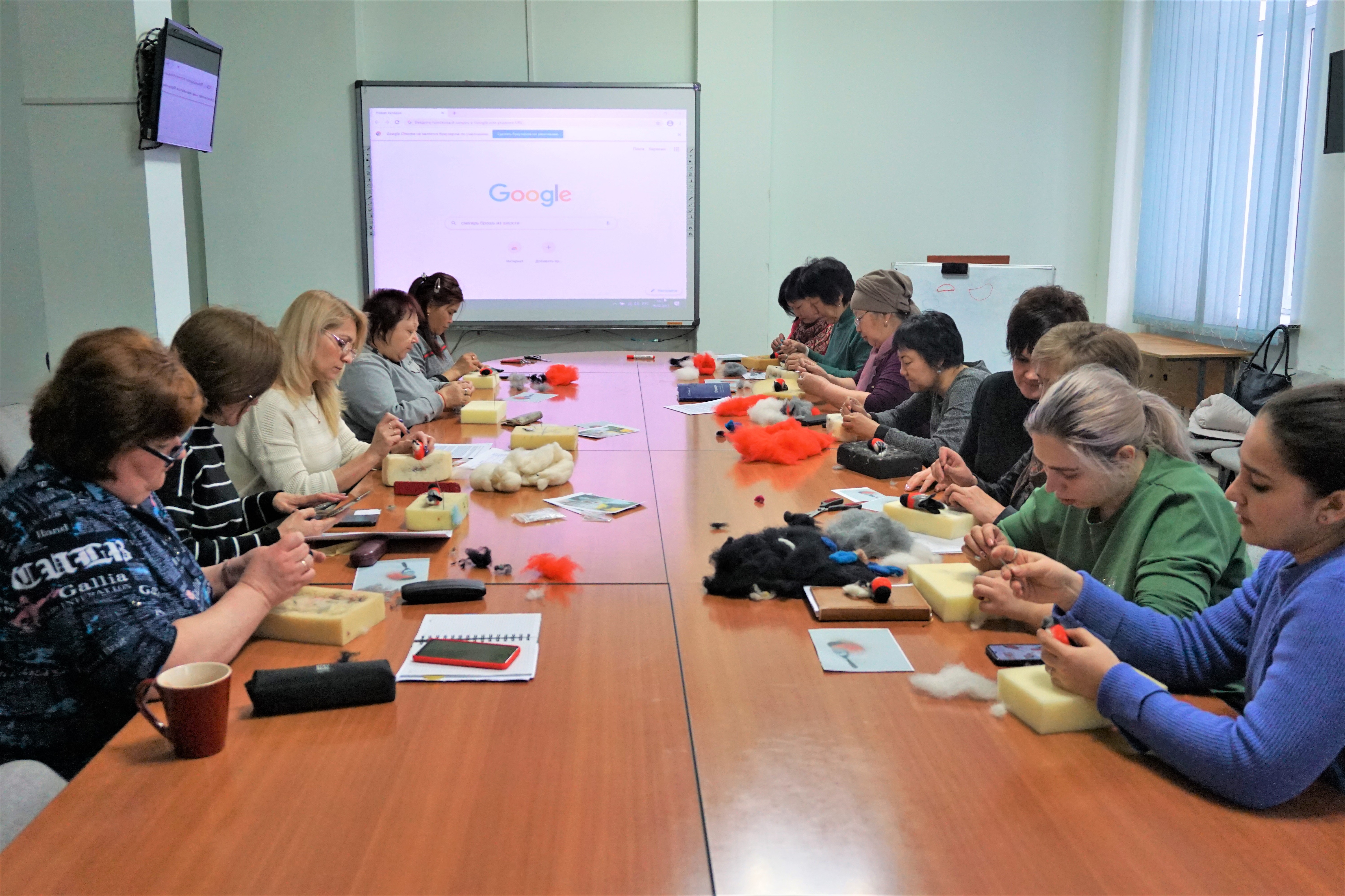 Курс проводился в оффлайн формате, его посетили работники дополнительного образования и педагоги школ. Занятия курса прошли по таким направлениям, как «изонить», «стимпанк», мокрое и сухое валяние из шерсти, оригами, работа с бросовым материалом. Слушатели курса узнали основные особенности и возможности декоративных материалов, технологию изготовления войлока методами сухого и мокрого валяния, основы технологии направления «стимпанк».