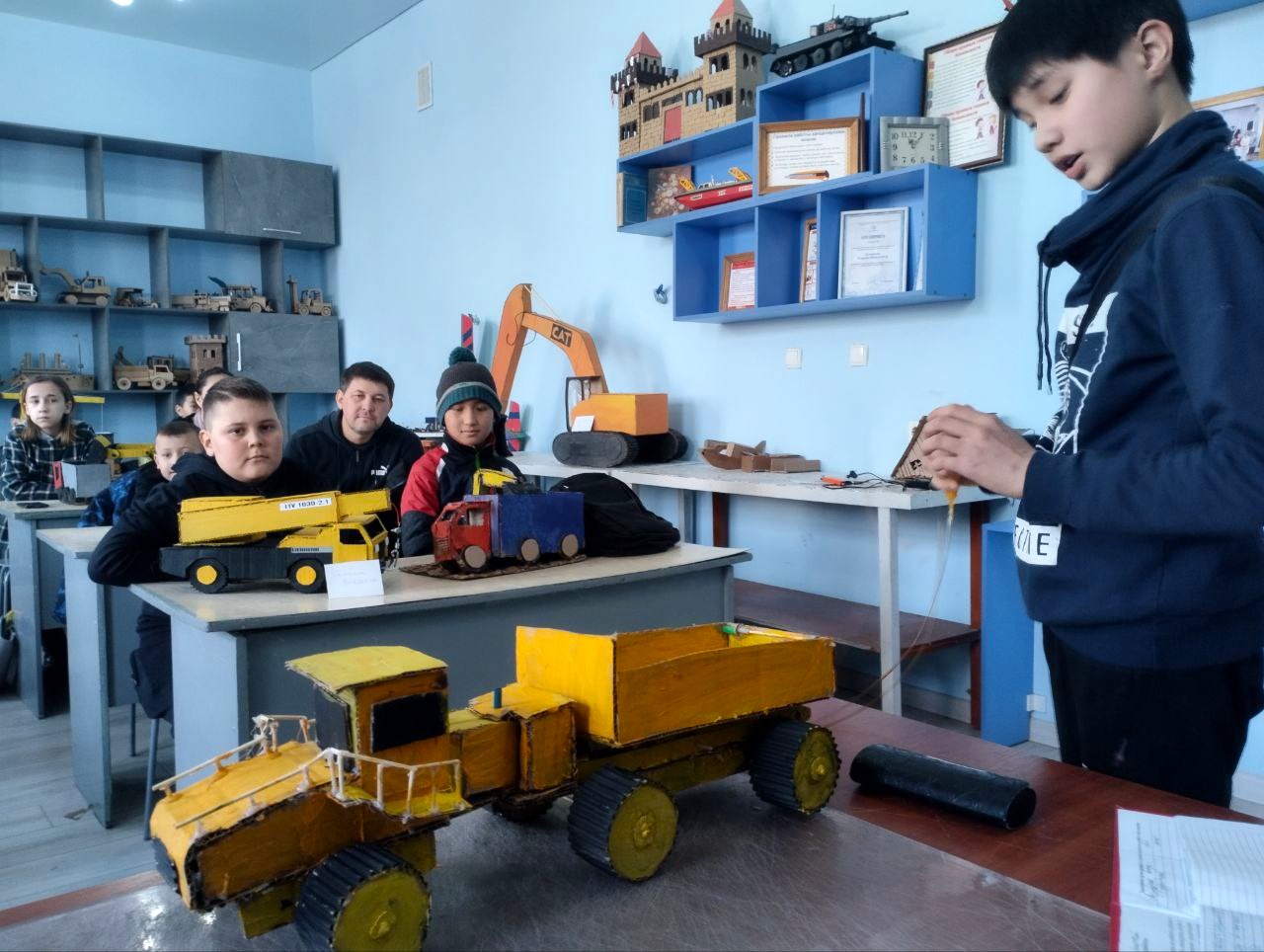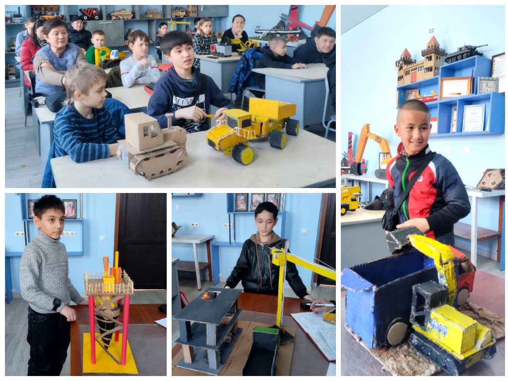 Участникам было необходимо изготовить стендовые модели любой стороительной техники из картона и презентовать их членам жюри. Работы оценивались по мастерству исполнения, качеству стыковки швов, покраски и детализированности макета. В конкурсе приняло участие 10 кружковцев первого и второго годов обучения, от 9 до 13 лет. Авторы лучших работ были отмечены грамотами и медалями. Первое место занял Мырзабеков Элхан, второе место разделили Савченко Ульяна и Соколов Владимир, а третье — Лукьянов Георгий, Кудайбергенов Нурбол и Дворовой Анатолий. Несмотря на то, что это был конкурс, защита проектов проходила в теплой дружеской атмосфере, поддержать участников пришли родителя и друзья.