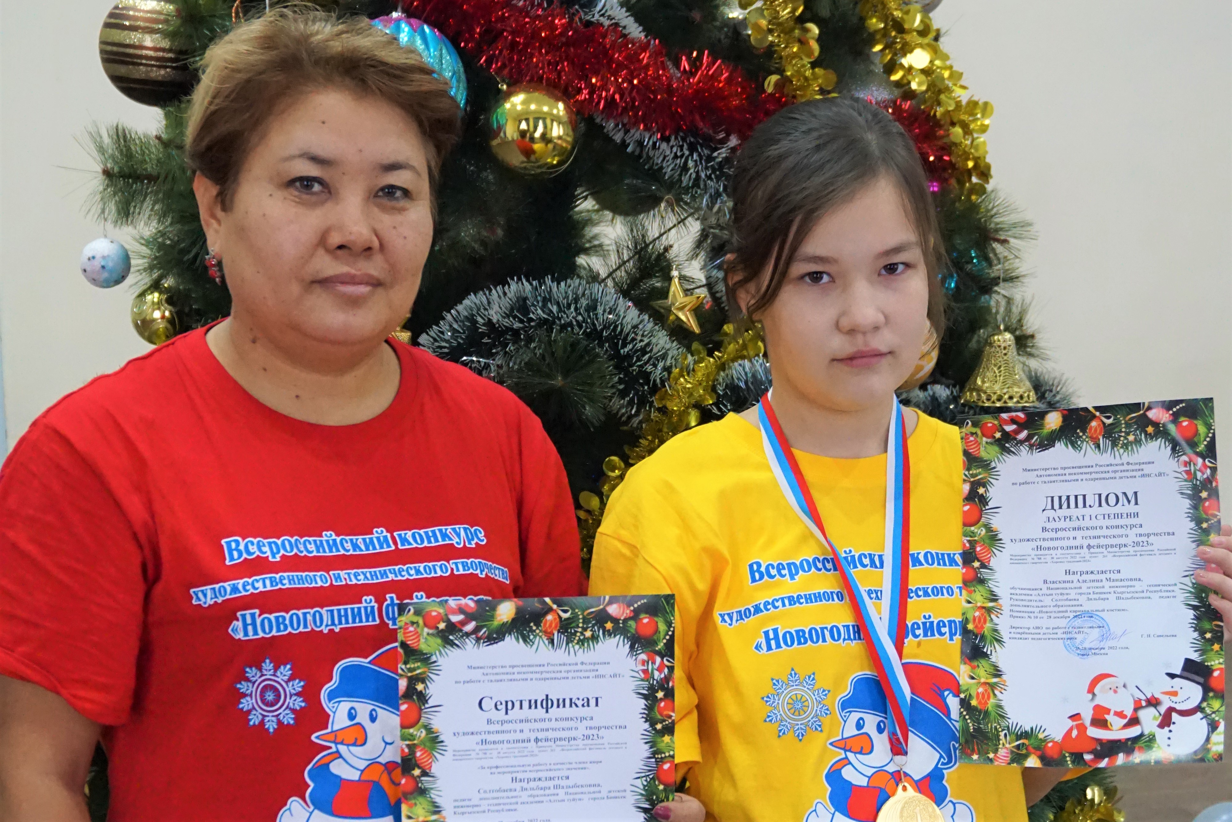 Дильбара Шадыбековна и ее воспитанница Власкина Аделина заняли I место во Всероссийском конкурсе художественного и технического творчества "Новогодний фейерверк - 2022", который проходил в городе Москва!