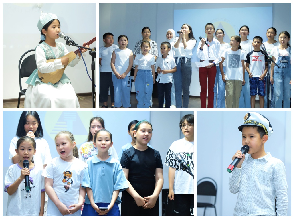Прекрасным украшением праздника стали творческие номера от наших талантливых воспитанников: Бакытов Адамбек исполнил песню, посвятив ее тем, кто защищал нашу Родину в годы Великой Отечественной войны; ребята из кружка «Ораторское мастерство» рассказали веселые скороговорки, а воспитанники клуба английского языка – спели песни из известных мультфильмов, Бакытова Салтанат исполнила музыкальные композиции на комузе.