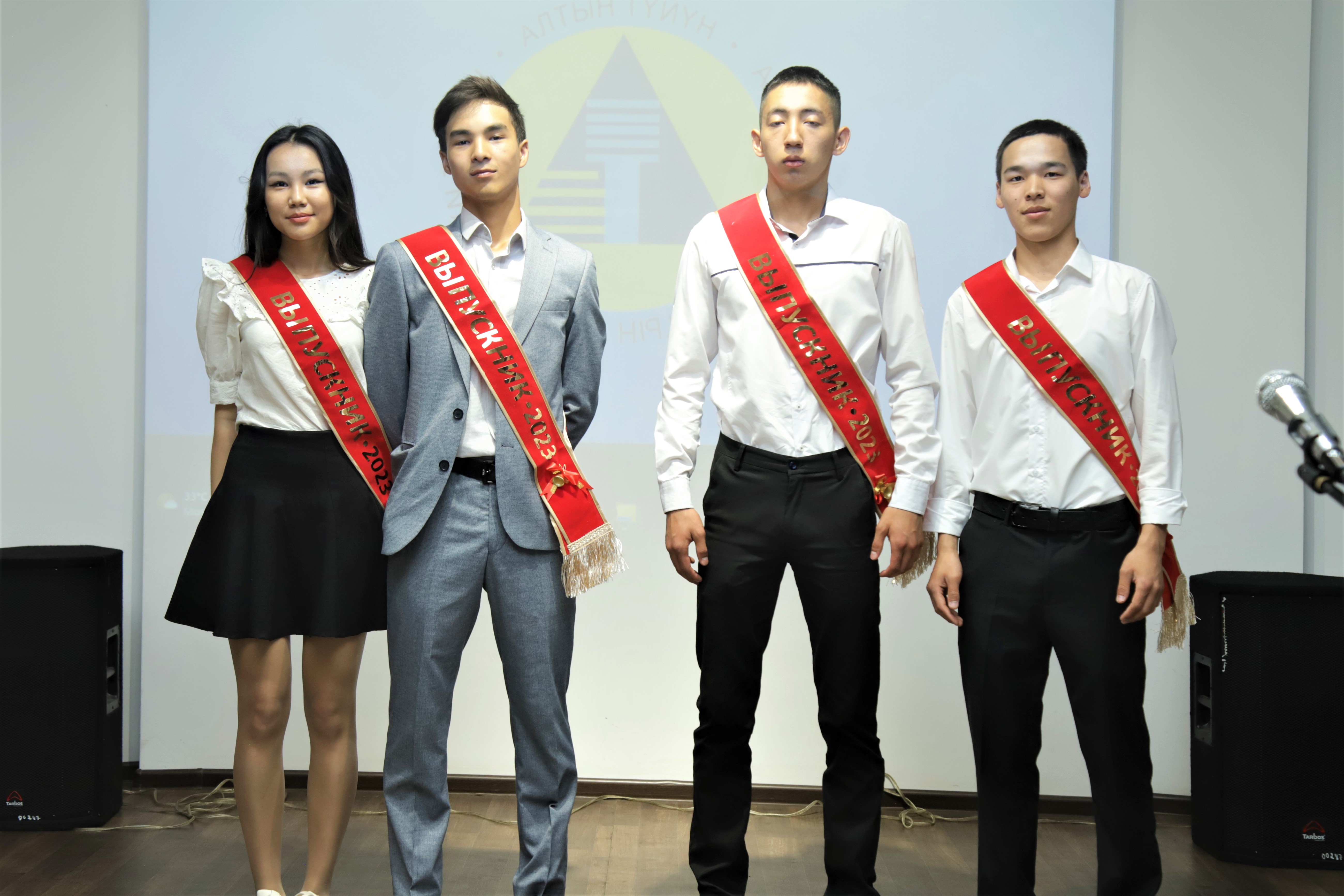 Также этот праздник был посвящен и нашим замечательным выпускникам - ребятам, которые много лет занимались в академии и теперь продолжат свой путь в высших учебных заведениях: Советканову Ринату, Бекматову Акылу, Тахировой Элизабет и Куттубекову Мирбеку. На протяжении многих лет они не просто хорошо учились и принимали активное участие в жизни «Алтын туйуна», но и достойно представляли нашу страну на международной арене, не раз становясь победителями и призерами международных соревнований! Мы желаем им получить прекрасное образование, интересную профессию, а также успехов в учебе и творчестве!