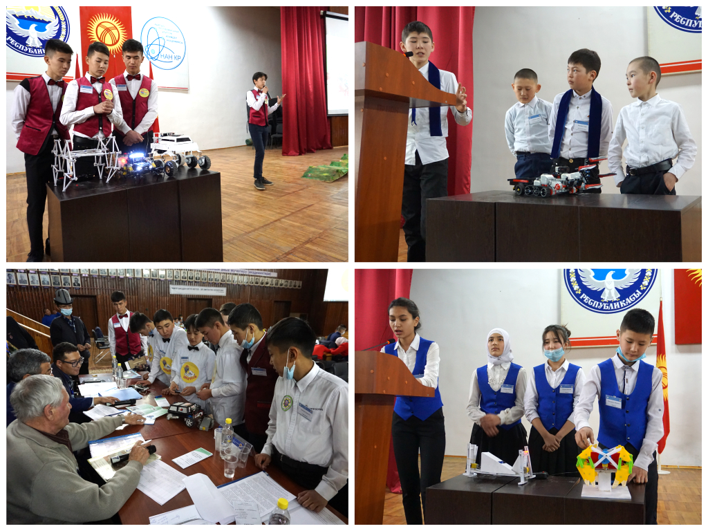 В качестве «домашнего задания» НТО участникам было предложено разработать шаговый механизм и систему управления перемещением шагающих транспортных средств по сложной (пересеченной) местности. Стоит отметить, что все проекты ребят были очень интересны и технологичны. Юные инженеры не просто привезли макеты, а сконструировали движущиеся модели, которые собирали и программировали самостоятельно. Стоит отметить и высокий уровень исполнения проектов: почти все работы были выполнены из конструкторов LEGO или из деталей, самостоятельно разработанных и напечатанных ребятами на 3-D принтере, использовались различные датчики, а также устройства дистанционного управления. Это говорит о том, подобные мероприятия не просто способствуют популяризации научно-технического образования и творчества в регионах Кыргызстана, но и помогают ребятам обмениваться друг с другом опытом, узнавать о новых материалах и технологиях!