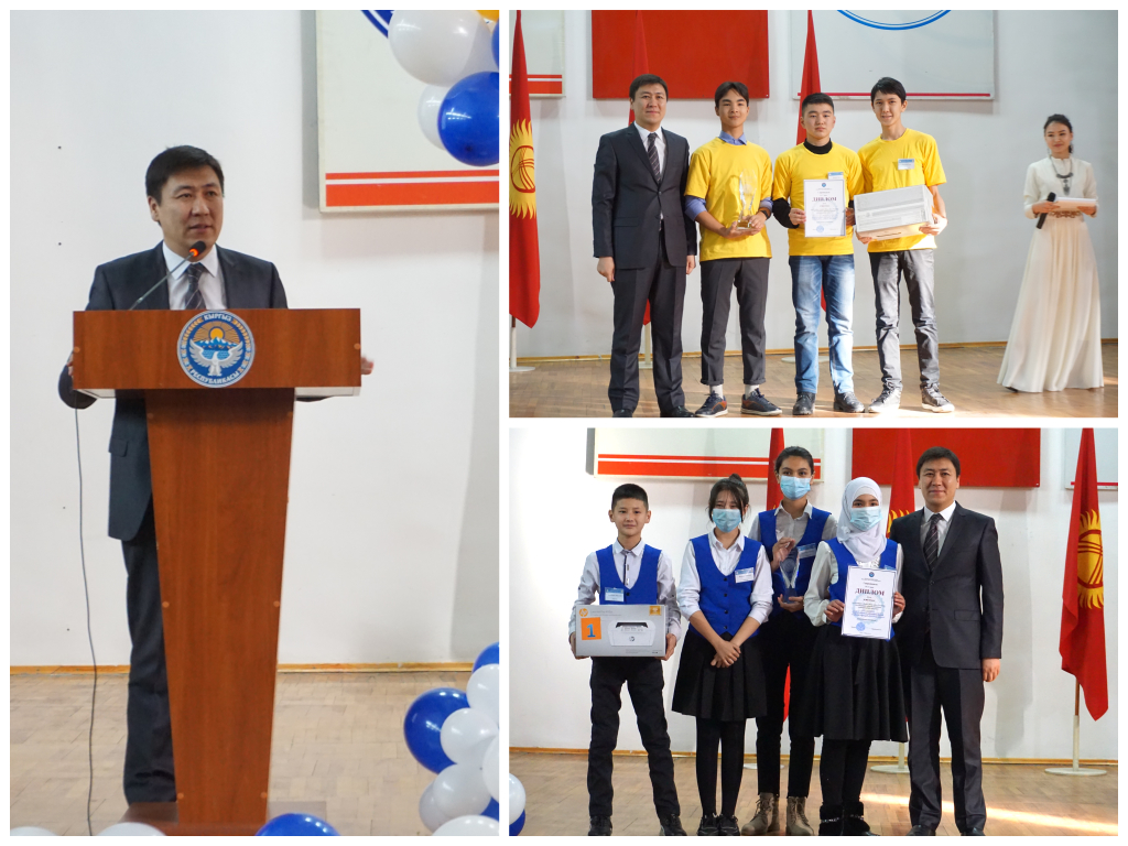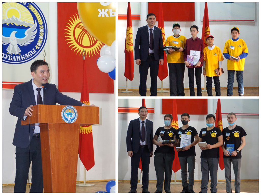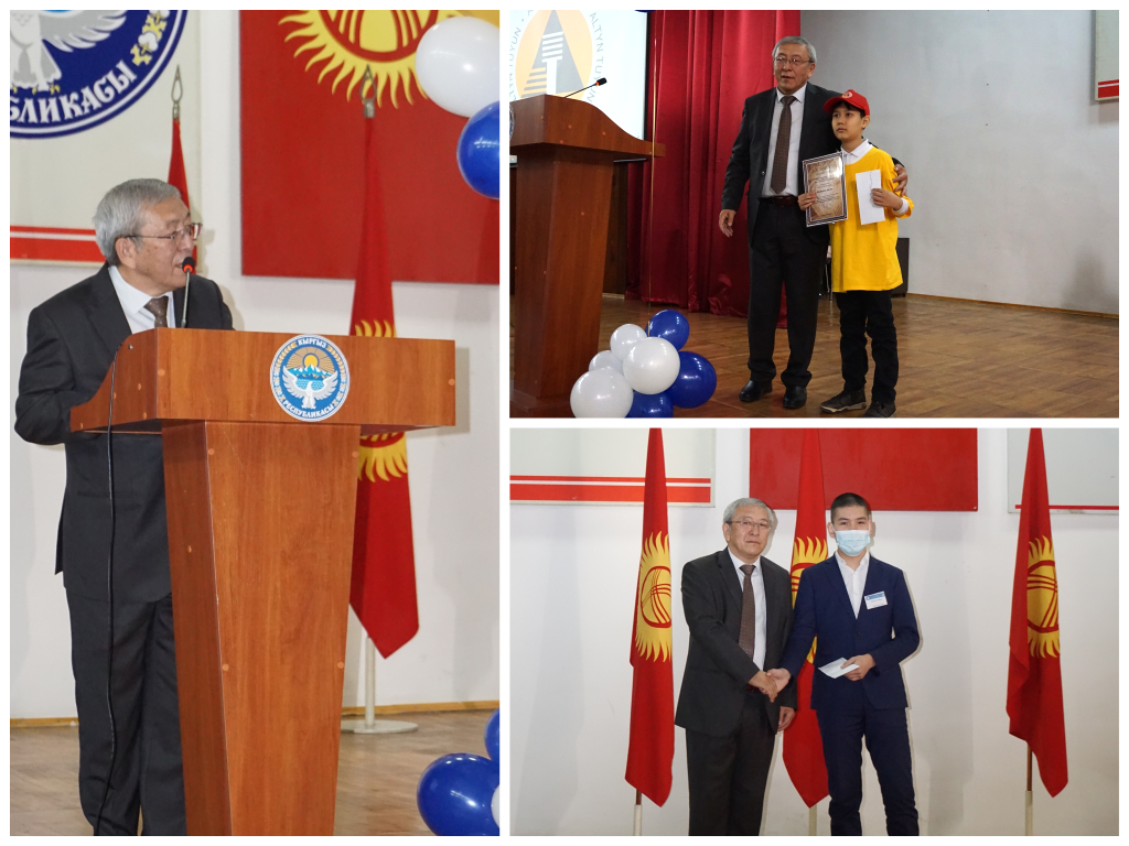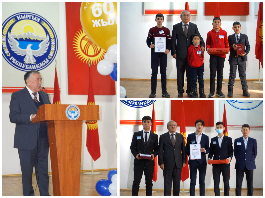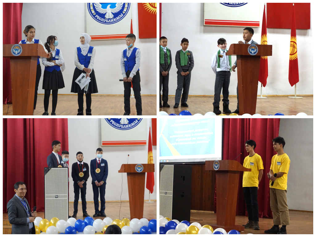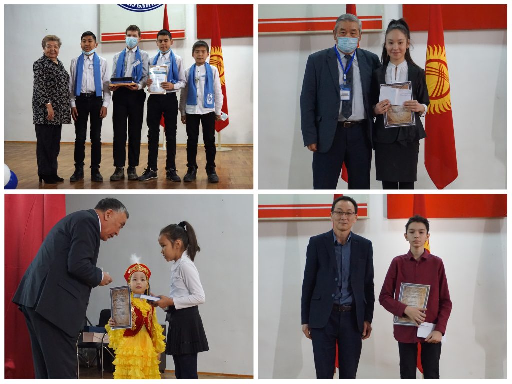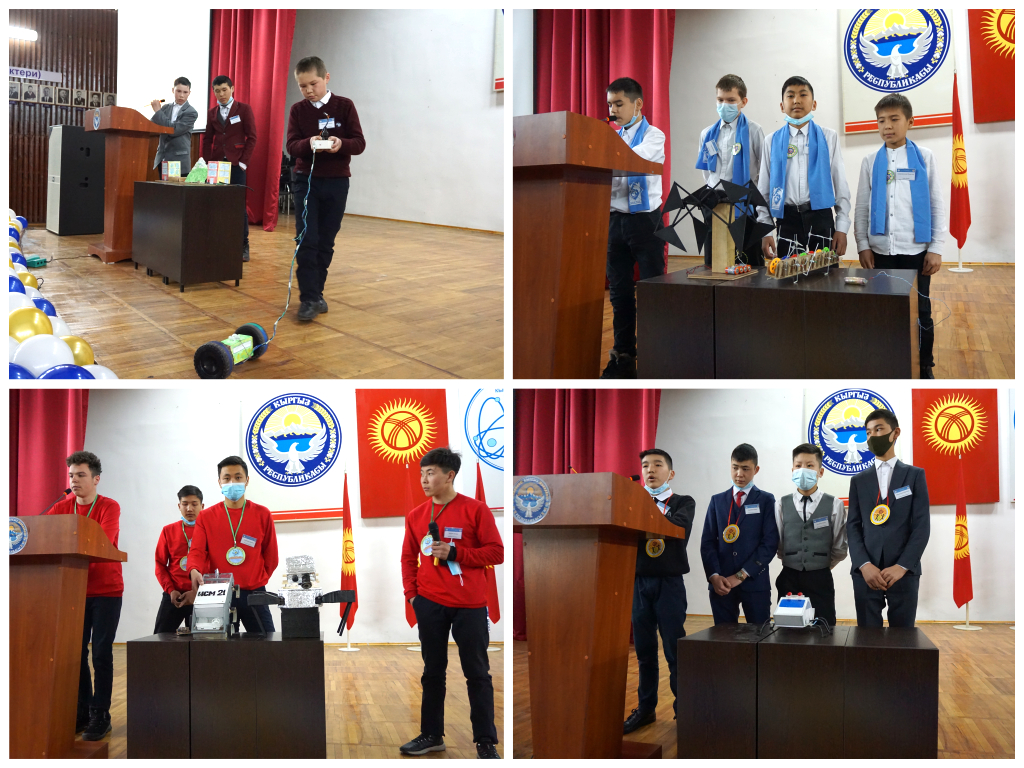 Именную стипендию и сертификат доктора технических наук, профессора, члена-корреспондента НАН КР Кожогулова Камчыбека Чонмуруновича получила Кубанычбекова Керемет (воспитанница РДИТА «Алтын туйун», студия кройки и шитья «Плюс» за создание коллекции образов кочевников, победитель республиканского конкурса рисунка «Моя родина - Кыргызстан», педагог Солтобаева Д.Ш.). Именной стипендией и сертификатом доктора физико-математических наук, профессора, члена-корреспондента НАН КР Кидибаева Мустафы Мусаевича был награжден Эмильев Азимбек (кружок радиотехники, Нарынский областной образовательный центр). Именной стипендии и сертификата доктора технических наук, профессора, члена-корреспондента НАН КР Оморова Романа Оморовича удостоилась Рамисова Аделина (воспитанница шахматного клуба «Алтын туйун», чемпион Кыргызстана по шахматам в категории до 8 лет, педагог - Умарбеков А.А.). Именную стипендию и сертификат доктора технических наук, профессор Султаналиев Бактыбек Сабырбекович получил Мустафин Даниэль воспитанник РДИТА «Алтын туйун», кружок «Робототехника», победитель научно-технической олимпиады 2019 года, призер международного форума «Мы - интеллектуалы XXI века», педагог - Никулин А.Ю. От имени молодых ученых Национальной Академии наук ребят участников олимпиады поздравила кандидат биологических наук Тротченко Надежда Владимировна. Директор РДИТА "Алтын туйун" Ж.Б. Бапанова также поблагодарила всех ребят за участие, поздравила победителей НТО-2021 и вручила грамоту за IV место, а также поощрительный приз команде юниоров города Бишкек (Кимсанов Даниэль, Аширматкулов Нуристан, Гордненко Иван, Тураев Шухрат, руководитель - Эсенкулов Т.).